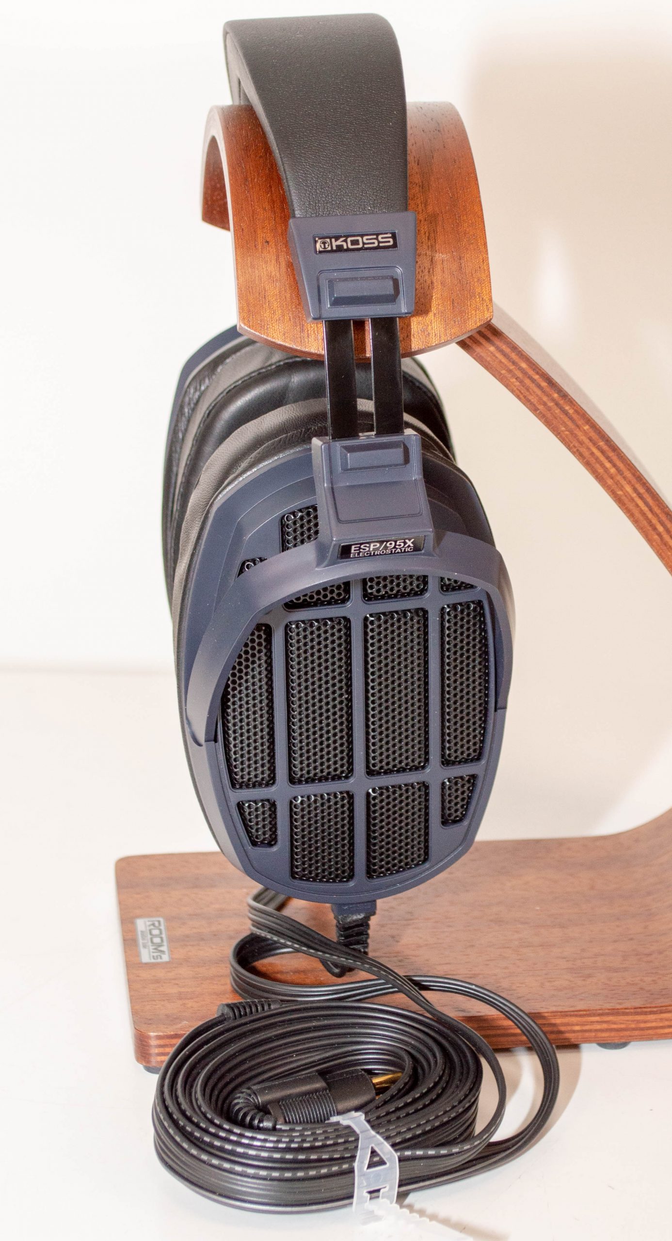 Koss ESP/95X that I’ve fitted with new sheepskin leather earpads and installed a Stax Wide PC-OCC cable to them. I’ve also modfied the stock damping to make them sound even better. Great sounding headphones when they are driven by proper amps and have the right earpads on them. They are in excellent condition