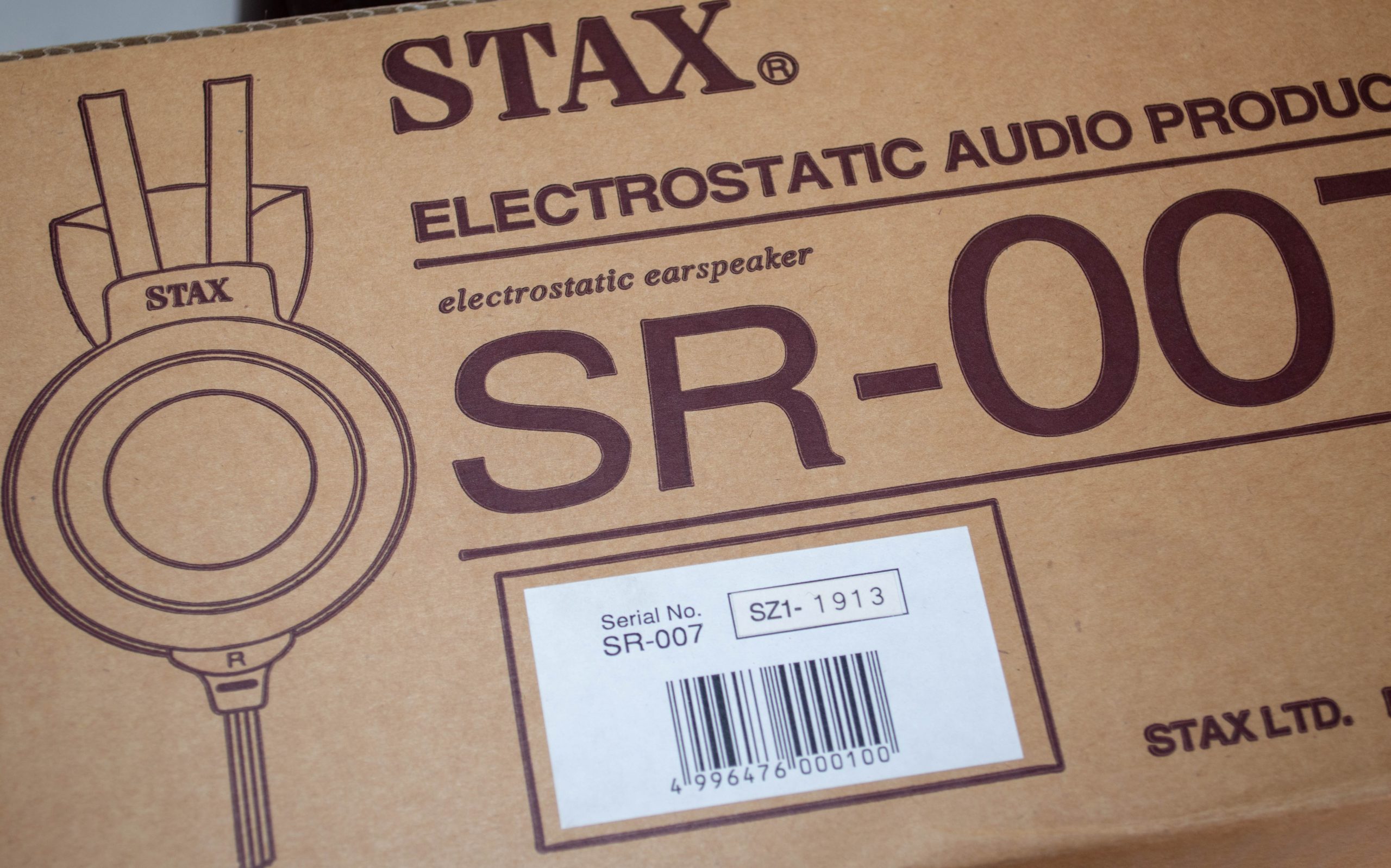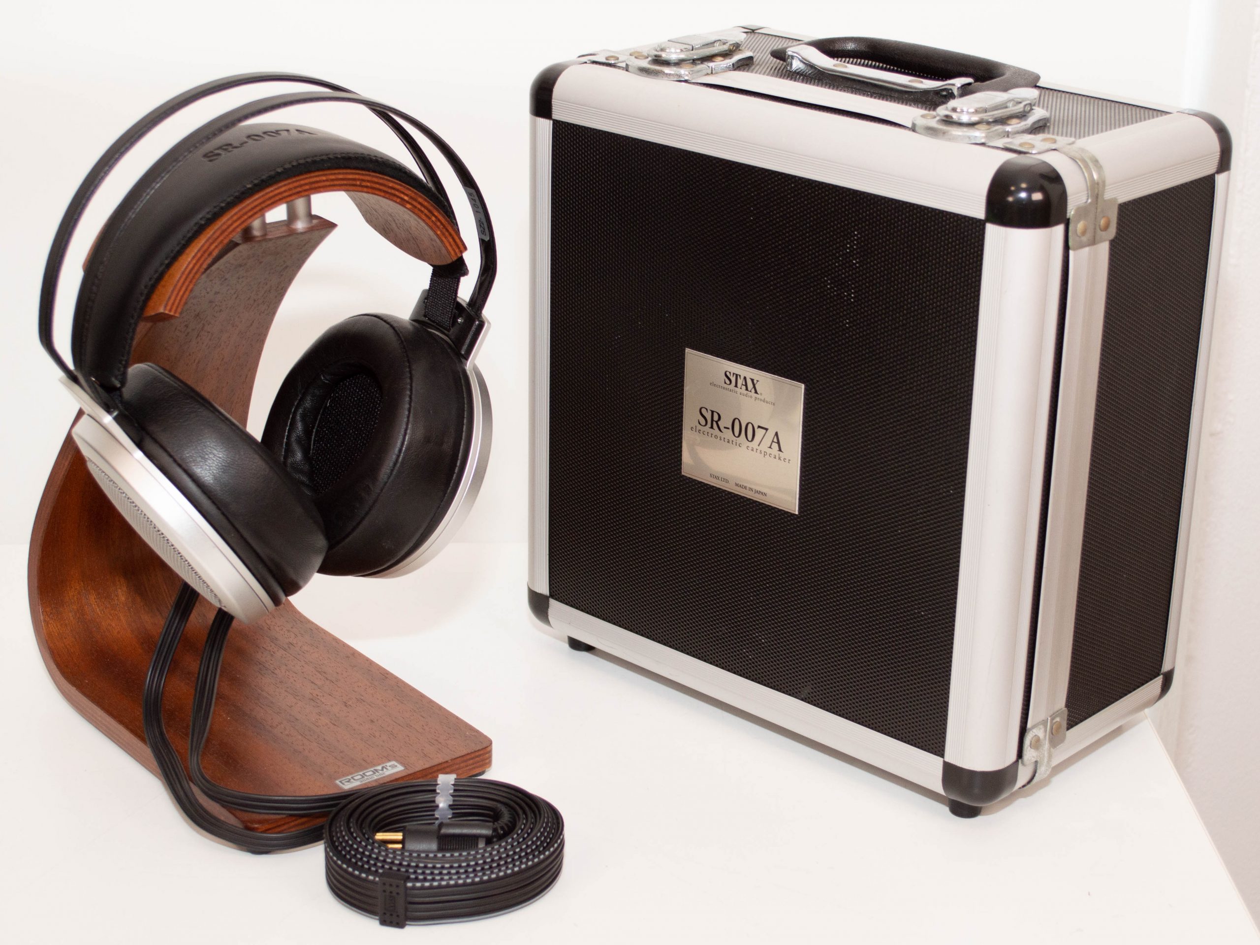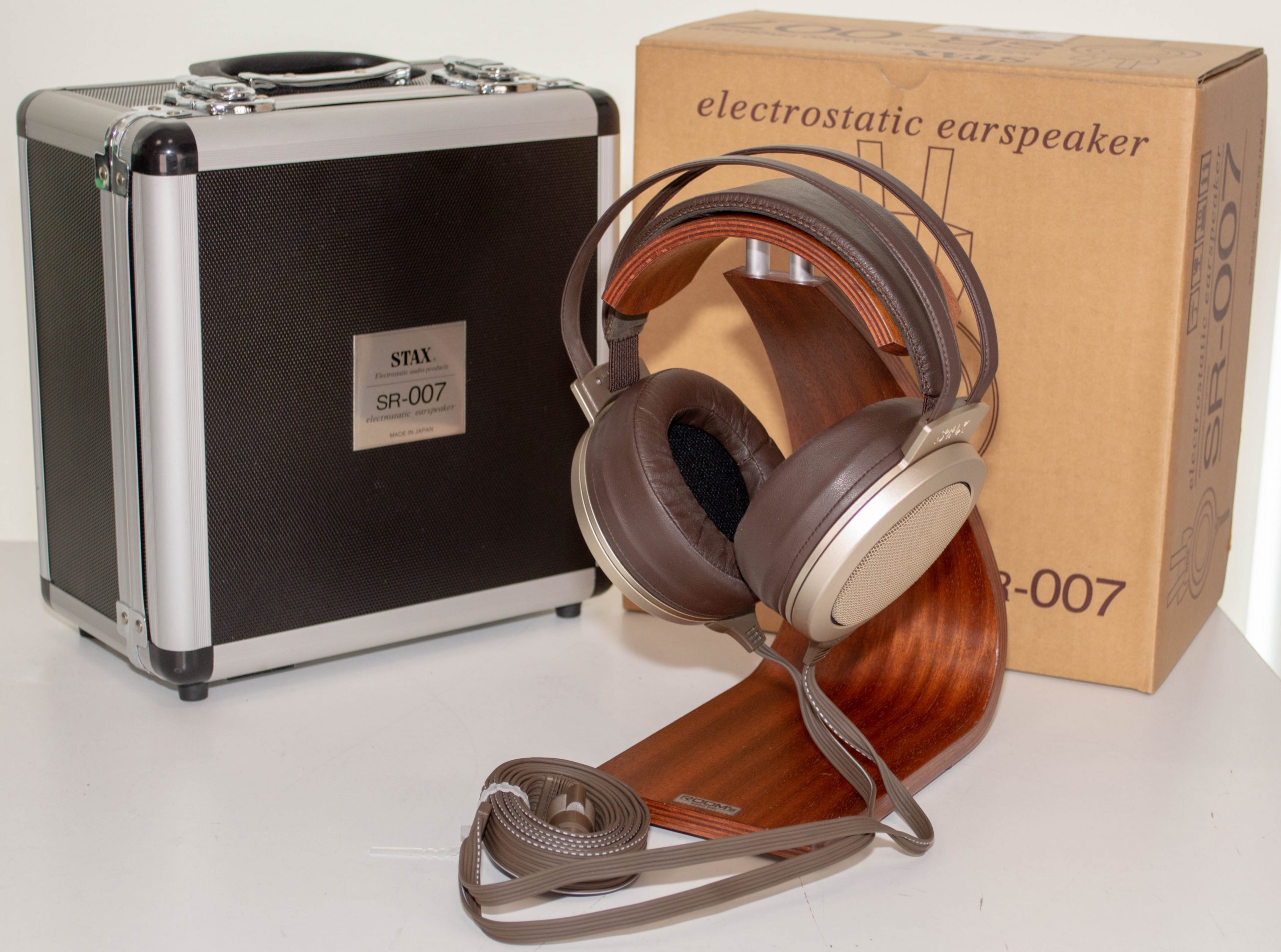 The very nice Stax SR-507, top of the line model from the *07 range and a rather rare unit at that. This set is in great condition, some slight marks here and there but earpads are close to perfect and they sound great. No original box with these.