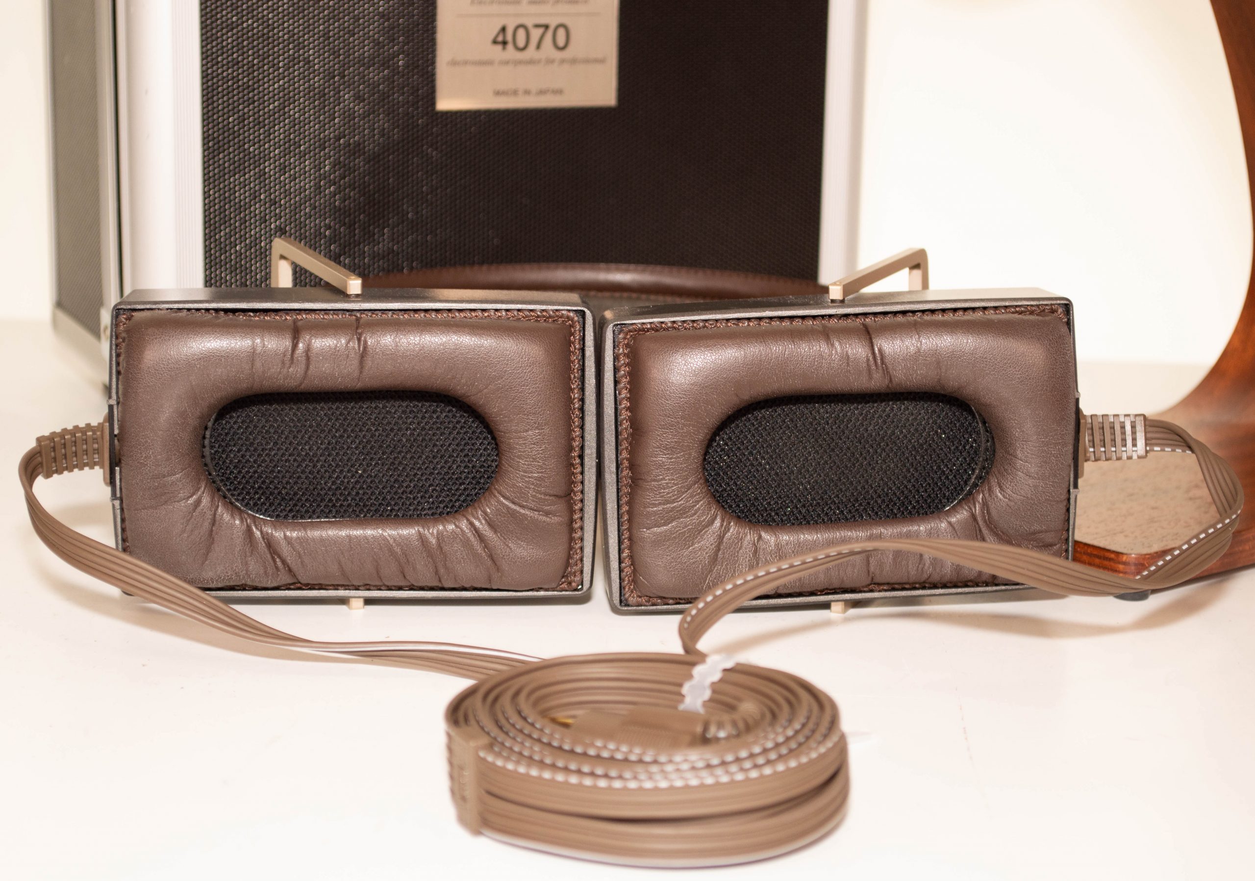 Here we have the very rare Stax 4070. This is the Mk2 version which helped a lot with the fitment, compared to the Mk1 units which are all but unusable for anybody with a larger head. These are to me, the best closed headphones ever made and nothing short of an engineering marvel. The level of skill and understanding of how electrostatics operate and their particular acoustic properties is just staggering. Current day Stax have nothing on these.