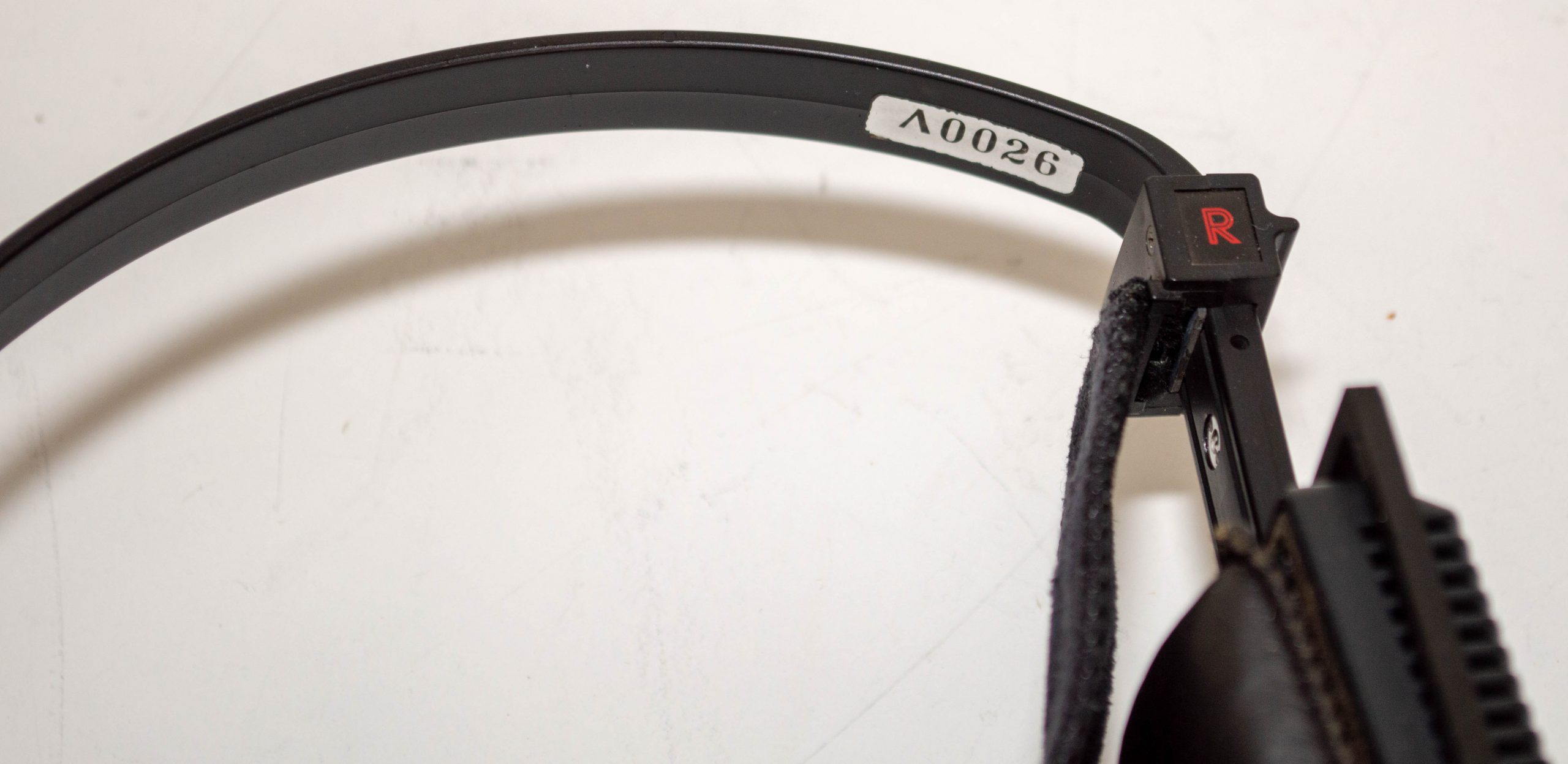 This set is in very good condition, the arc is perfect and just the right slack in the headpad. There are no marks on the plastic shells that I can tell and the only “issue” is that they are missing the serial number sticker. Either it fell off or the arc was replaced at some point and not transfered over. This set is fitted with the original earpads and fitted with the cloth inserts.
