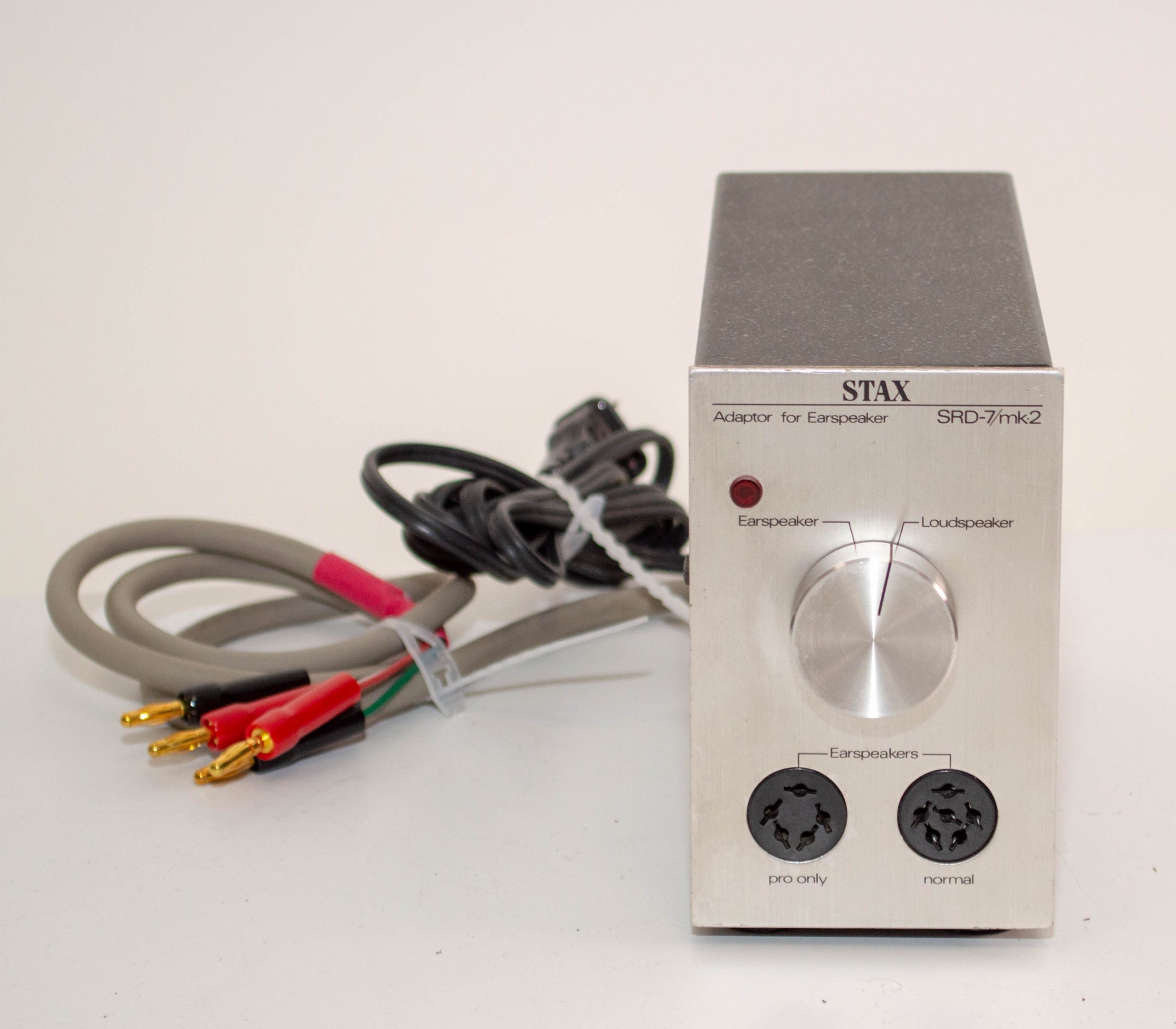 Stax SRD-7Mk2 in rather nice condition that I’ve gone over and cleaned up.  This is the last version of the SRD line and allows Stax headphones to be used with power amps to make for a nice and easy setup.  These have both Pro bias and normal bias outputs and can be used on any voltage.  They have a US style plug but I can supply a Euro style adapter for these.