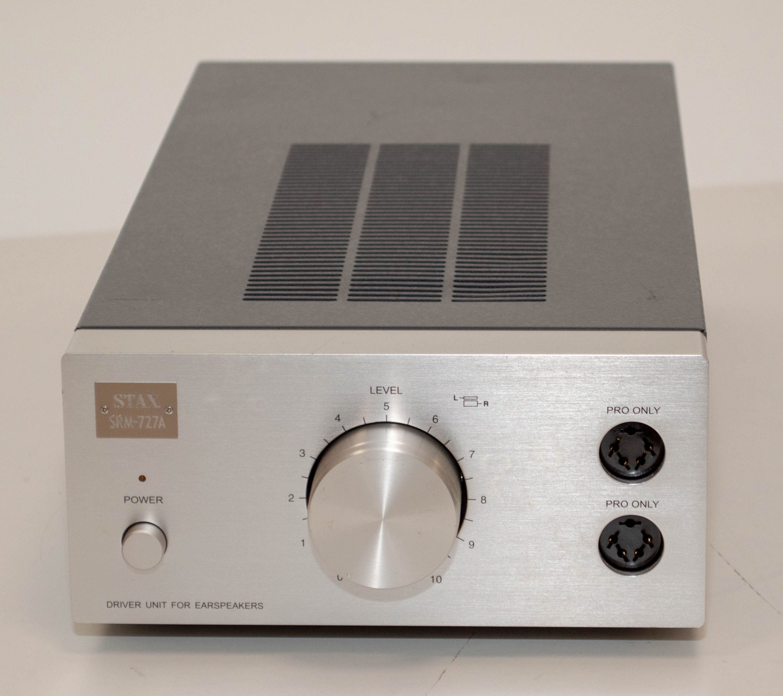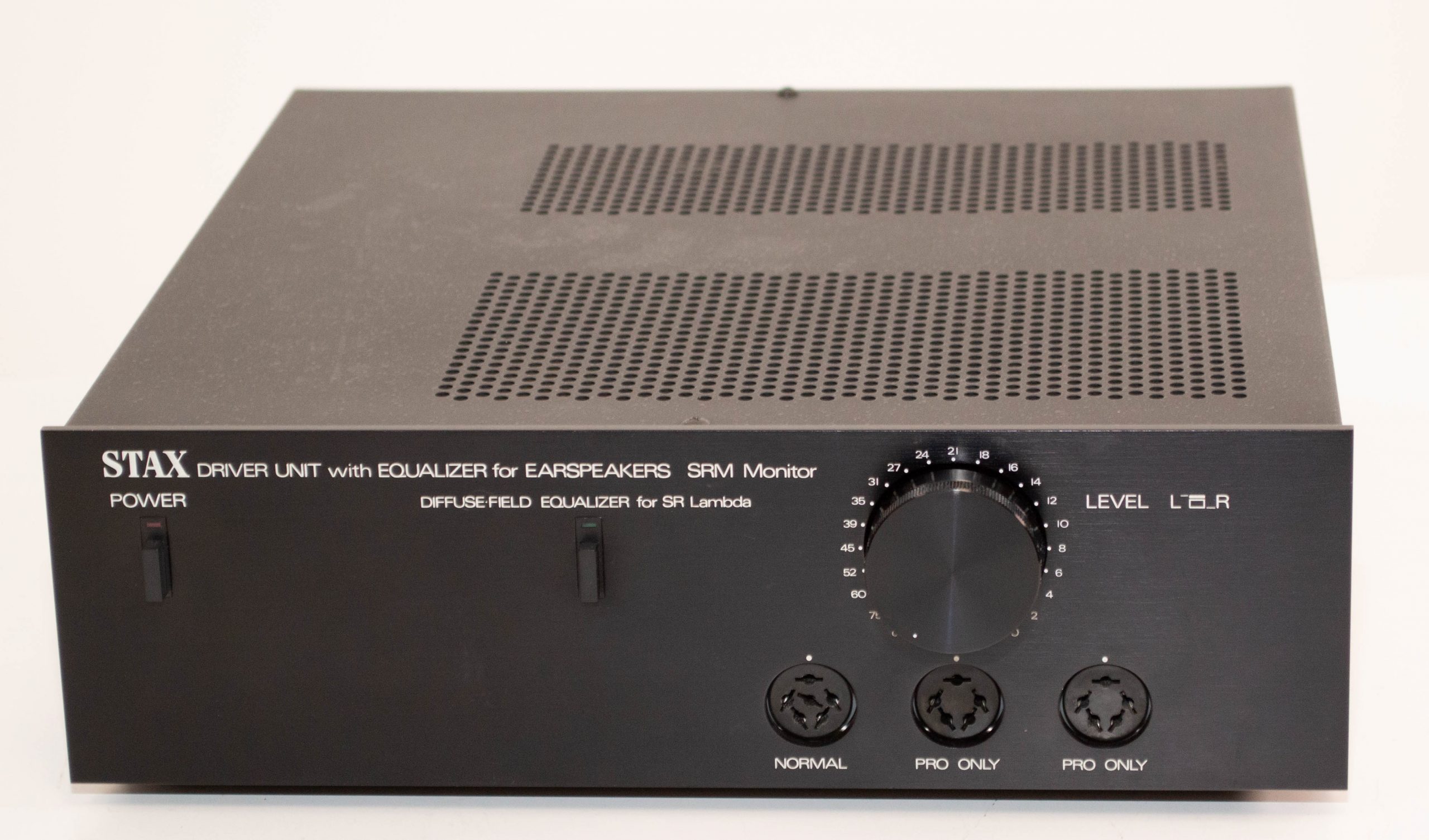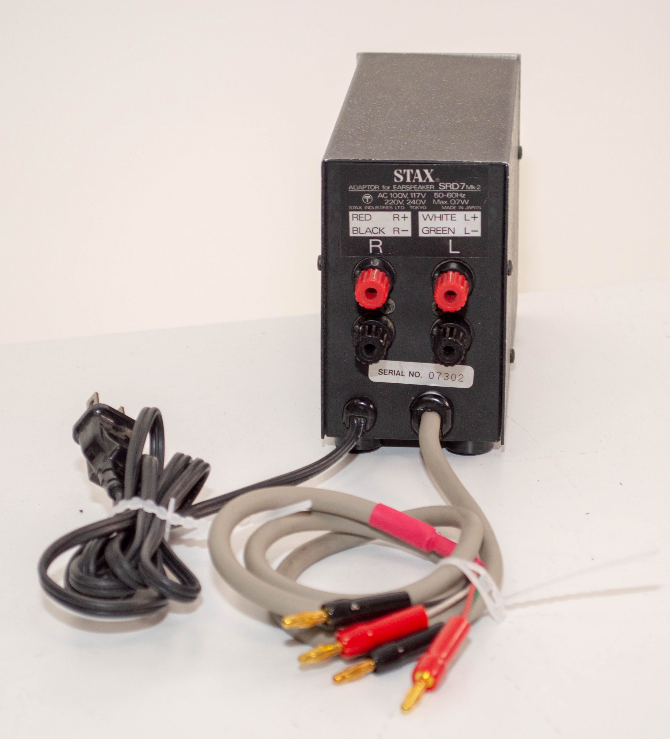 This is a stock Stax SRD-7Mk2 in pretty good condition.  This is the last of the SRD boxes and suitable for both Pro and Normal bias headphones.  This is a good way to drive electrostatic headphones off of speaker amps as these units provide the bias supply and use transformers to step up the audio signal to the right level.  It comes with a US/Japan power plug but is universal voltage so it can be used anywhere in the world with adapters.