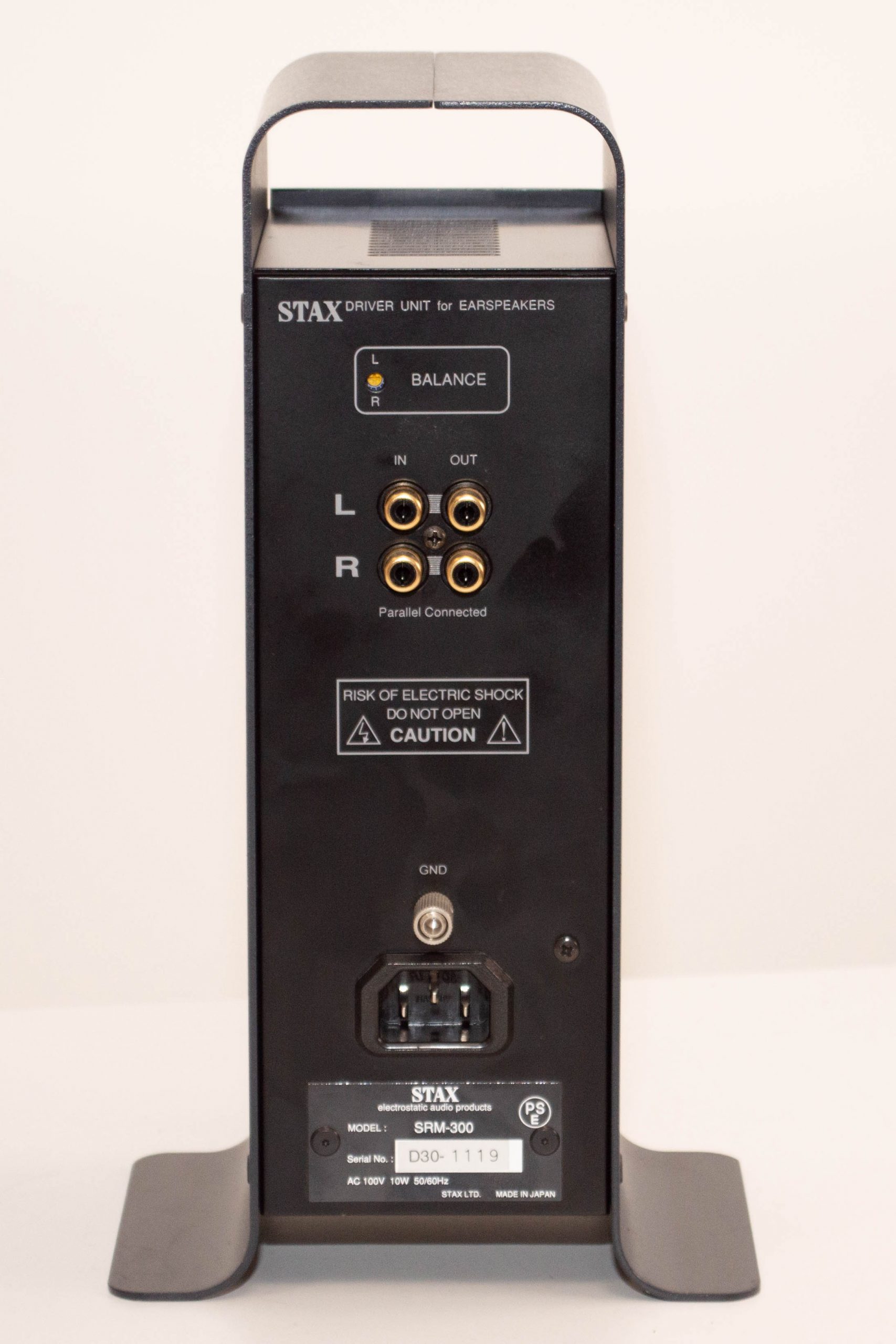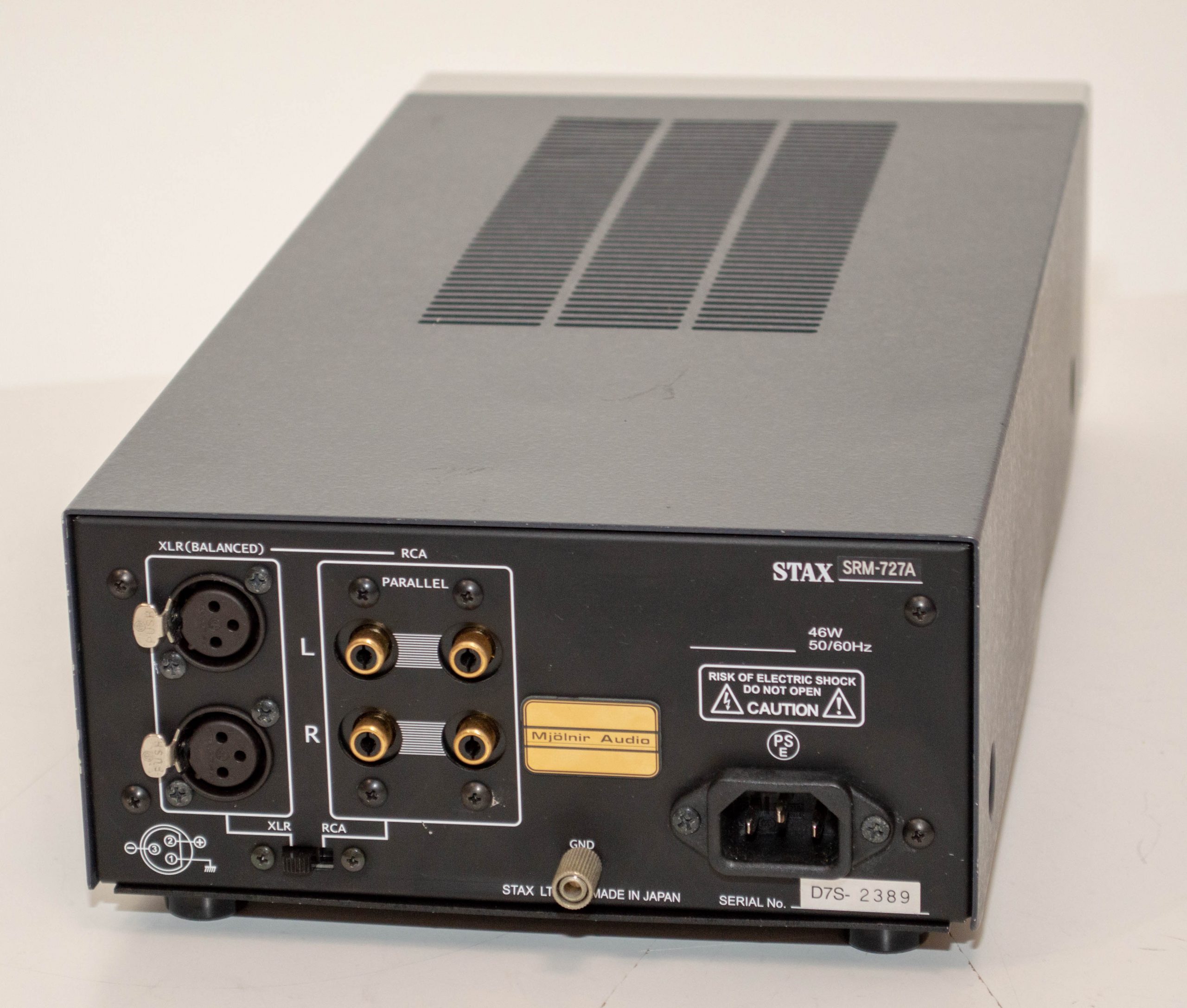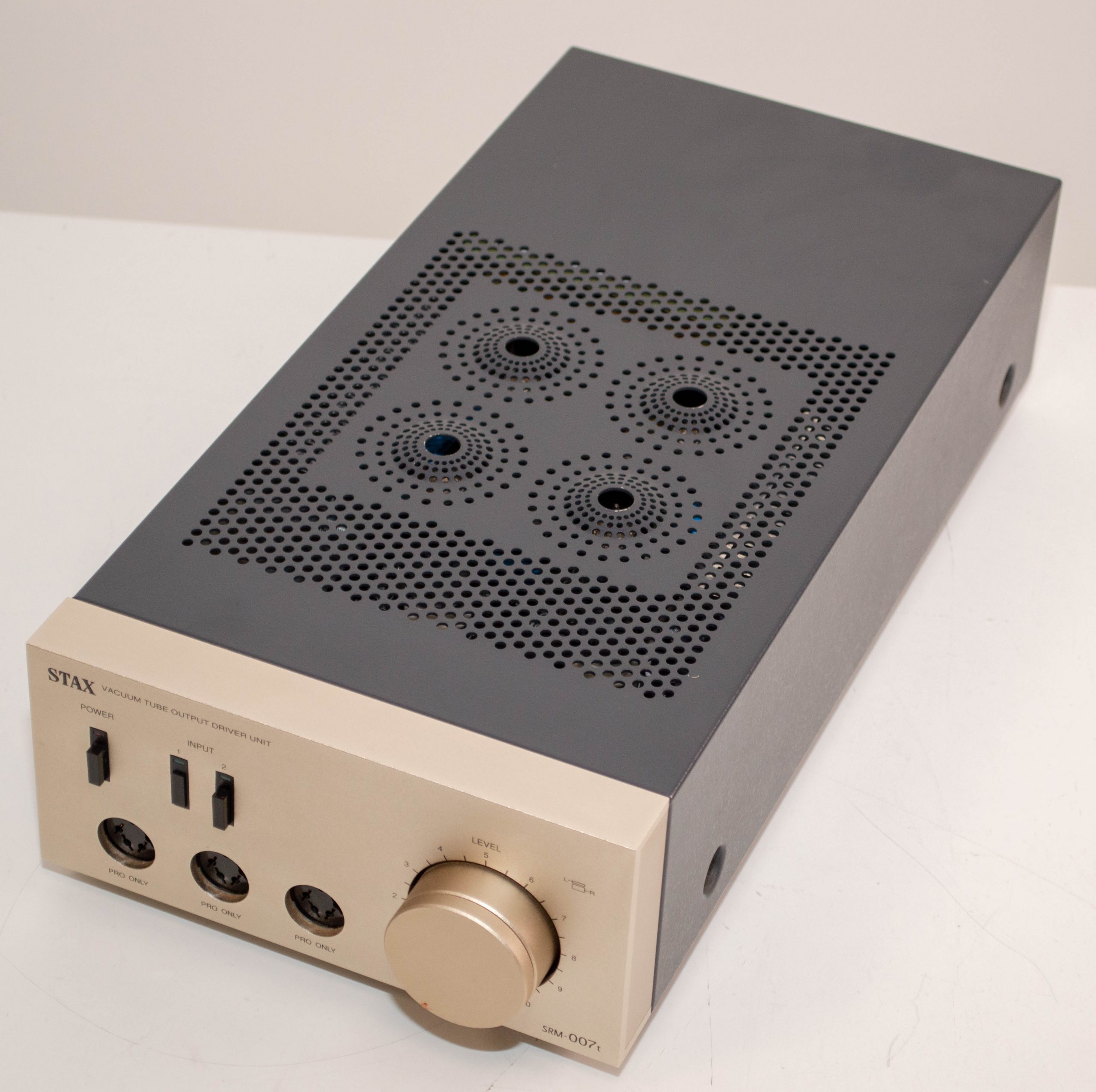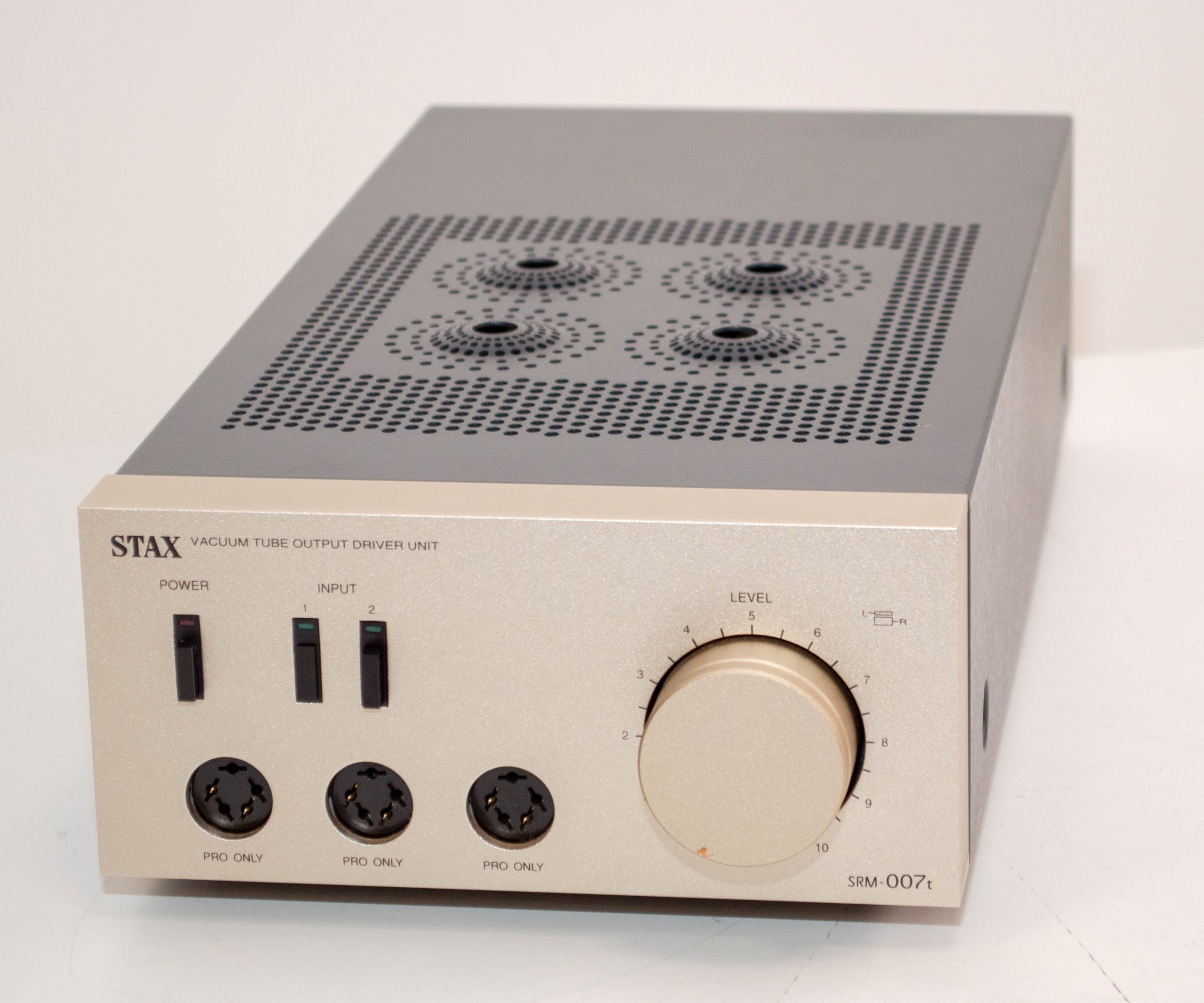 This is a stock Stax SRD-7Mk2 in pretty good condition.  This is the last of the SRD boxes and suitable for both Pro and Normal bias headphones.  This is a good way to drive electrostatic headphones off of speaker amps as these units provide the bias supply and use transformers to step up the audio signal to the right level.  It comes with a US/Japan power plug but is universal voltage so it can be used anywhere in the world with adapters.