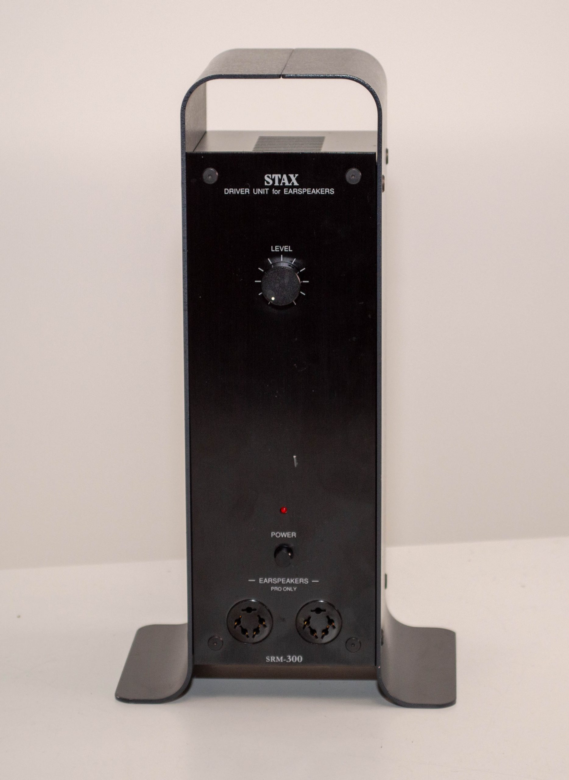 This is the oddball Stax SRM-300 amplifier (also called SRM-310 for the export version) which is the only production amp they made as a headphone stand.  In terms of amplifier design this has more in common with the portable SRM-001 and SRM-002 amps but with much more power.  It works well with the Lambda series but doesn’t have the power of something like a SRM-313 or 323.  I’ve fully refurbished the amp with new electrolytic capacitors and it is in lovely condition with just a few marks on it.  The biggest one is sadly right on the front panel but it could easily be touched up.  The amp can be set to any voltage before shipping it out.