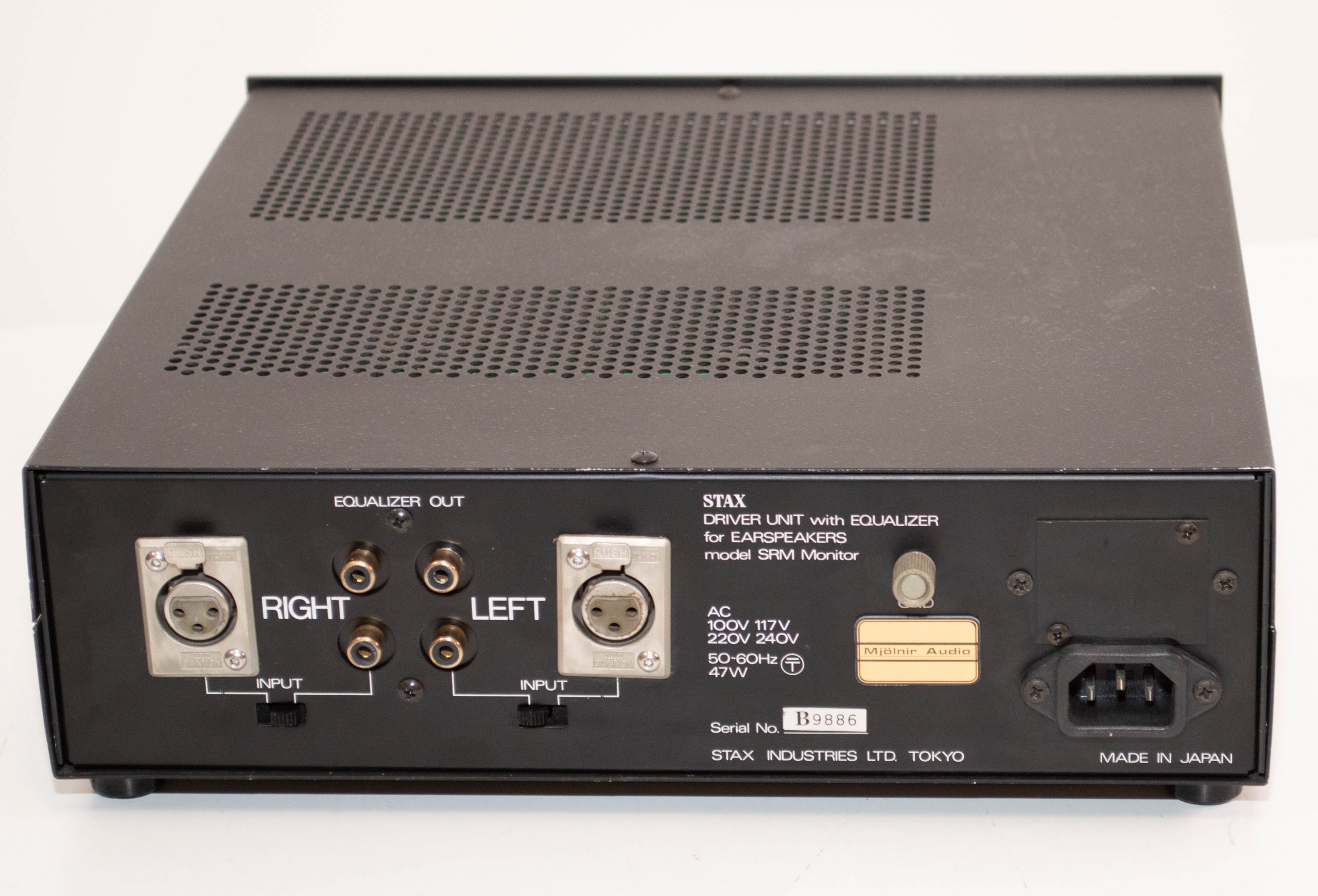 Here we have the super rare Stax SRM-Monitor, intended for studio use back in the 80’s.  This might be the rarest Stax amp from this era, even fewer units than the SRA-14S or even the SRM-T2.  This one has the black front panel which is rarer still as most were silver.  What’s inside are a fully fledged SRM-1 Mk2 and an ED-1 equalizer in the same box.  It’s a lovely setup with a SR-Lambda or SR-Lambda Pro and the amp also has an output for the EQ on the back to pass the signal onto another amp.