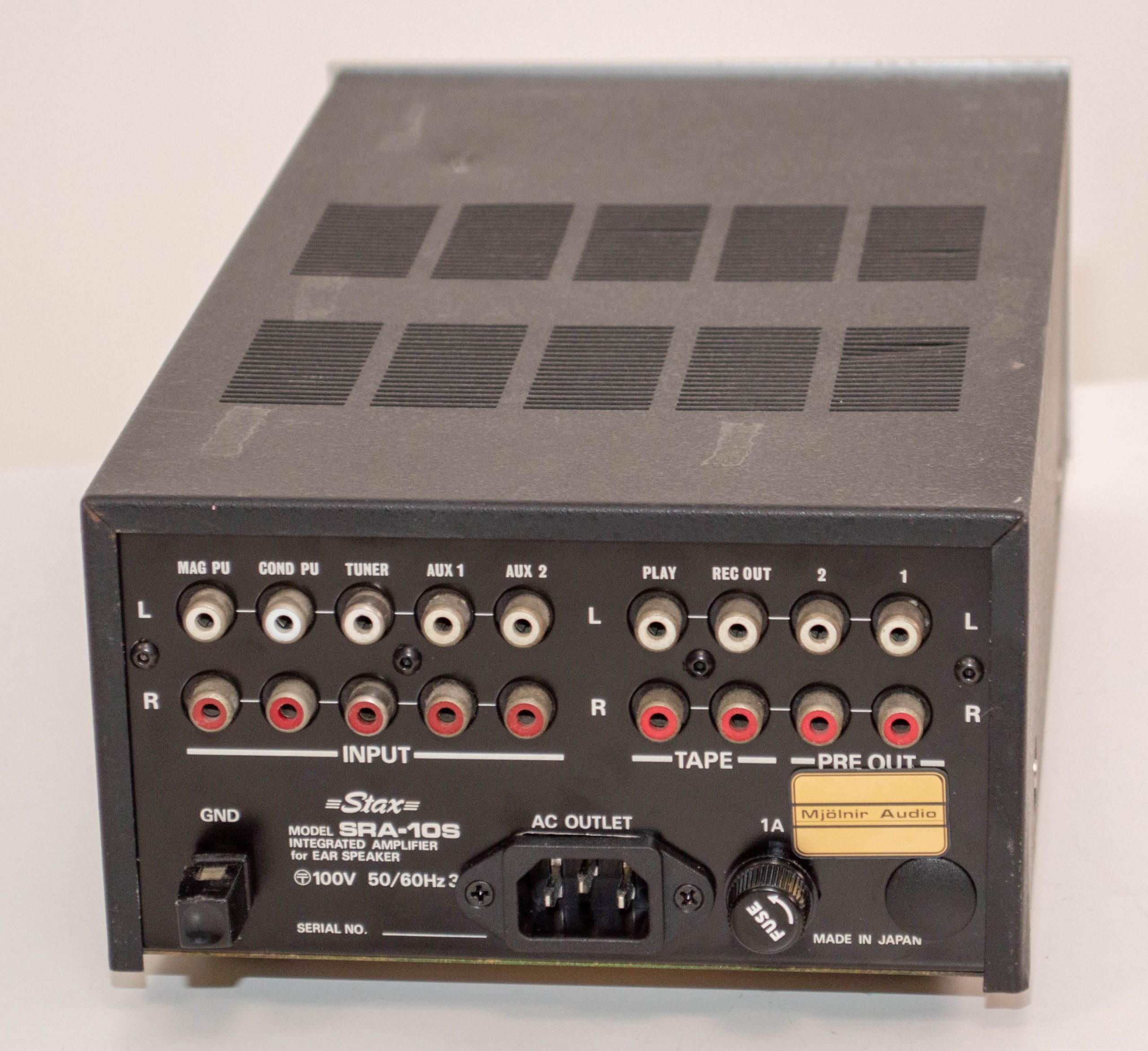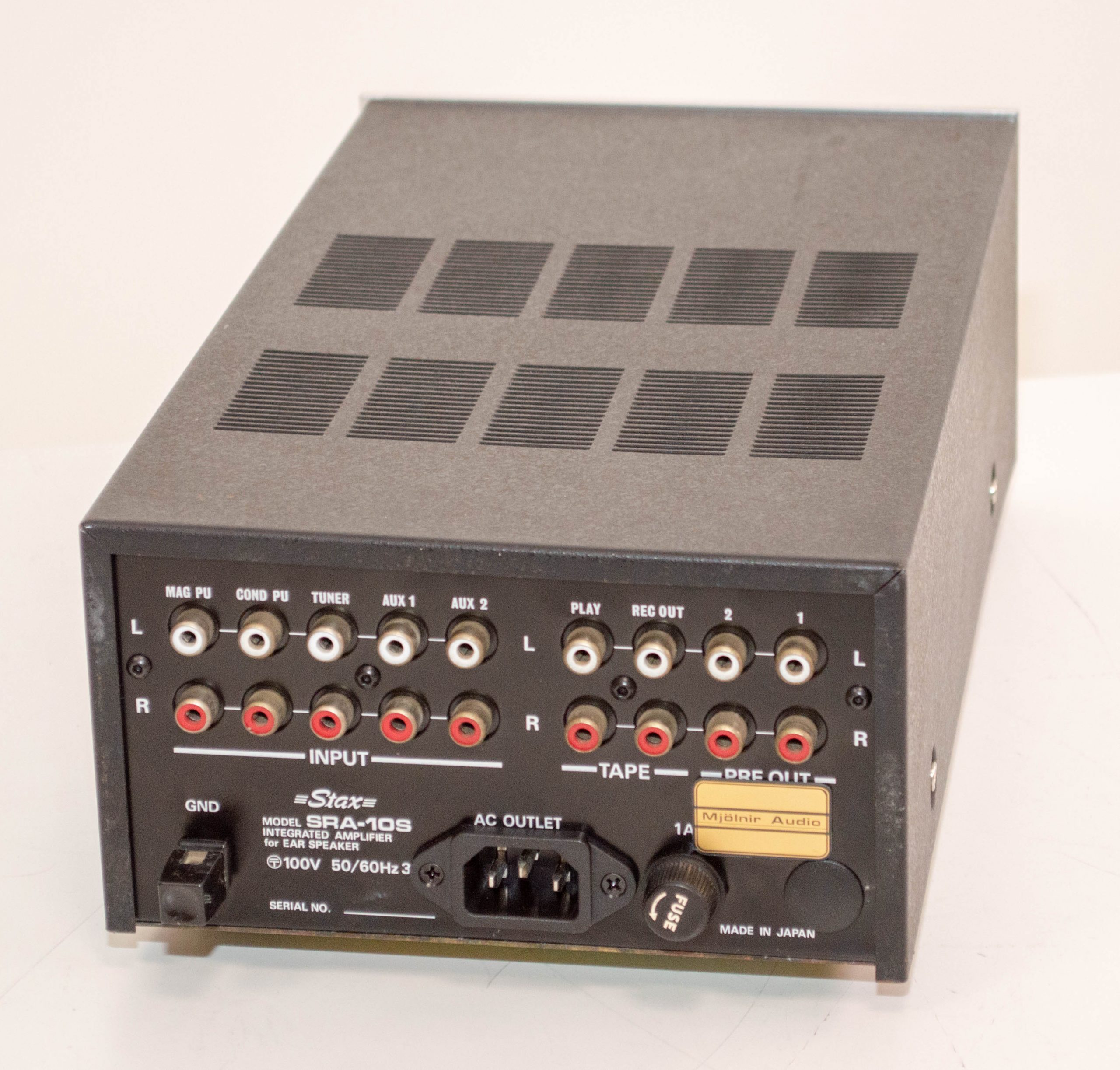 Here is the second of the fully rebuilt and modified Stax SRA-10S amps I did.  This one is in lesser condition with one of the knobs mismatched and some marks and blemishes on the back cover.  It’s a great sounding little amp and the preamp functionality is a great plus.