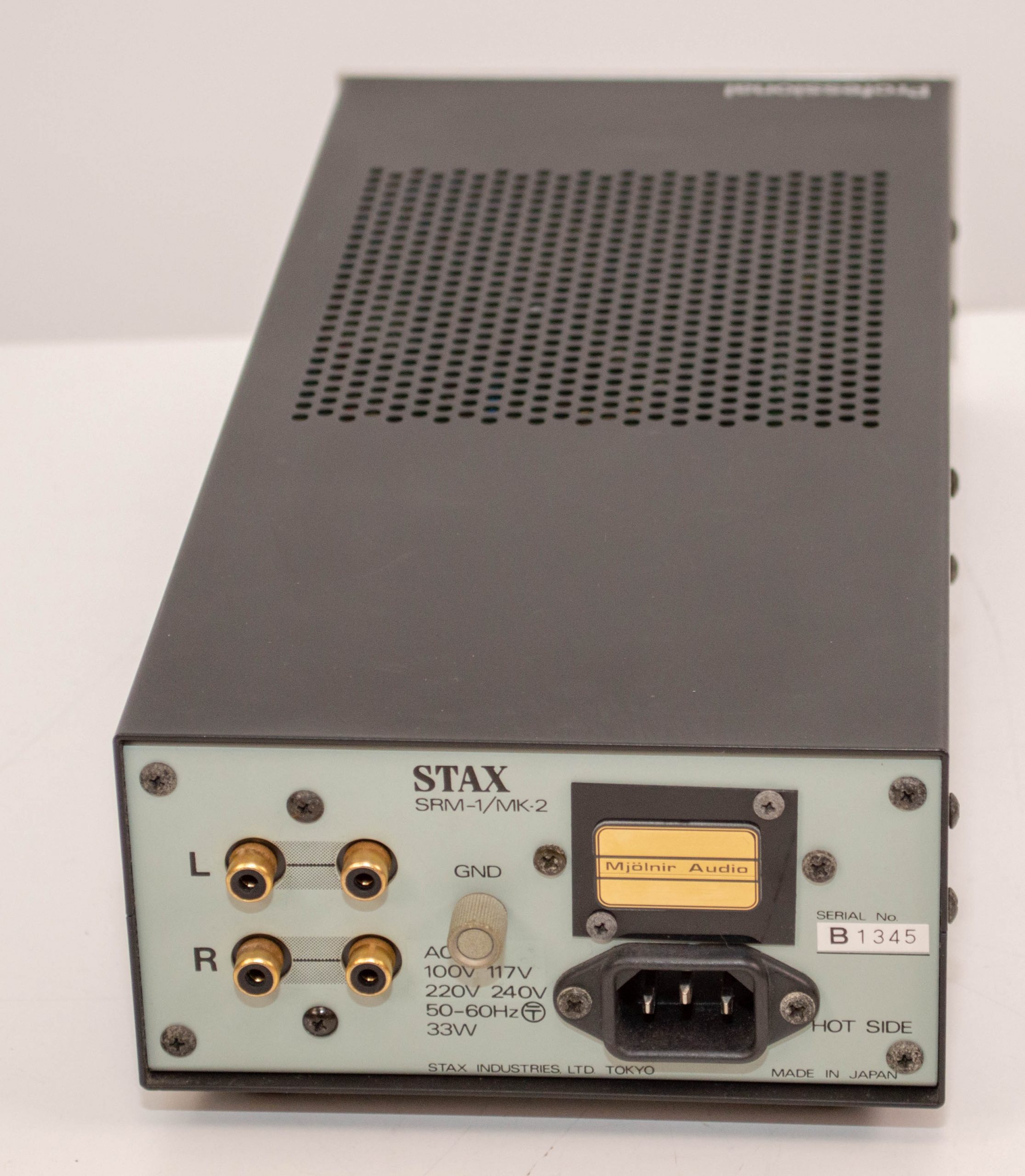 This is a stock Stax SRD-7Mk2 in pretty good condition.  This is the last of the SRD boxes and suitable for both Pro and Normal bias headphones.  This is a good way to drive electrostatic headphones off of speaker amps as these units provide the bias supply and use transformers to step up the audio signal to the right level.  It comes with a US/Japan power plug but is universal voltage so it can be used anywhere in the world with adapters.