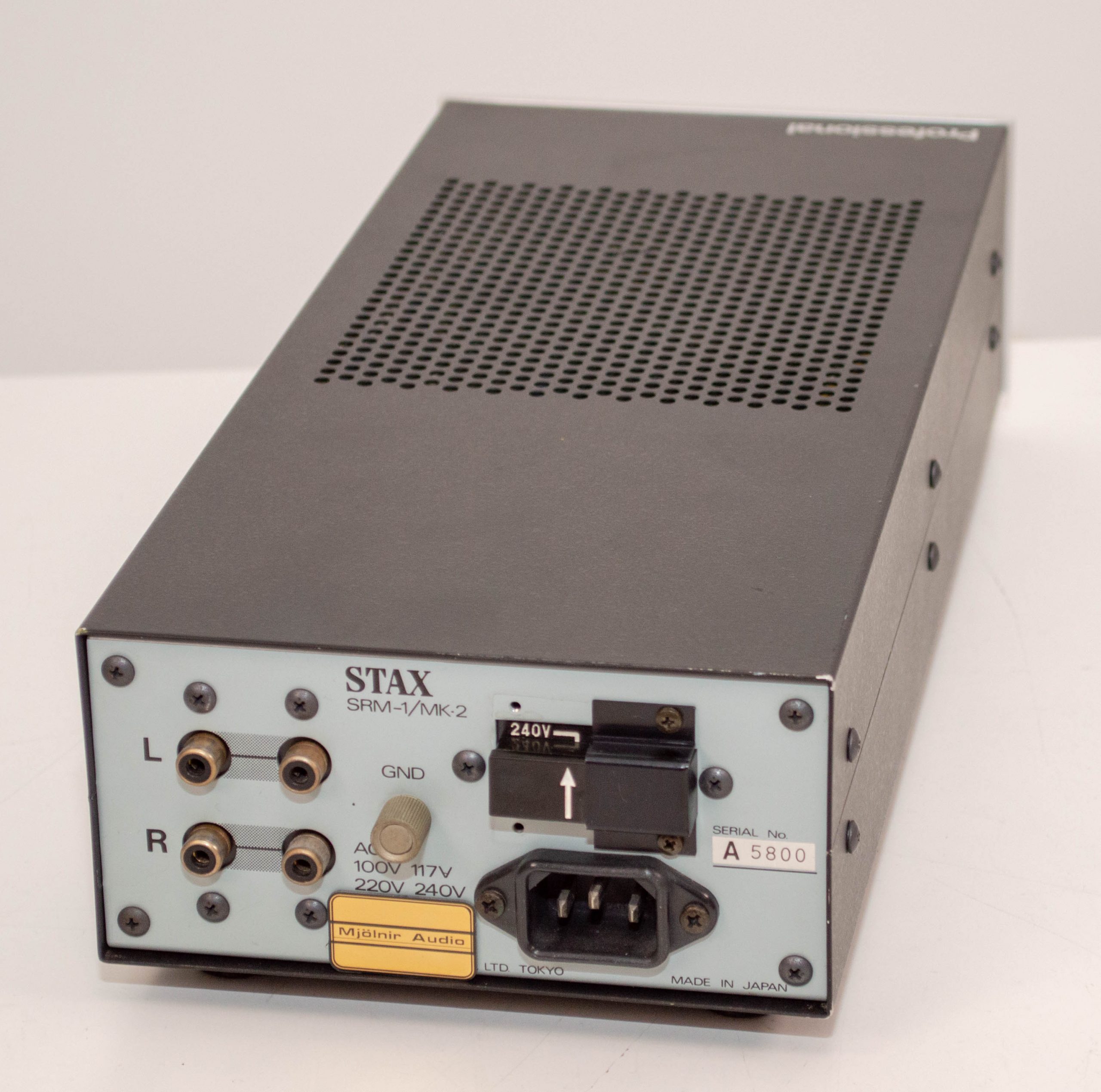 The legendary Stax SRM-1 Mk2 amplifier and this one fully refurbished with new electrolytic capacitors, the volume control cleaned and the bias supplies updated to the current standard.  It is in lovely condition, barely a mark on it and will continue to run for the next 40 years just fine.  This unit has the voltage selector on the back so no problem switching it to any voltage before shipping it out.